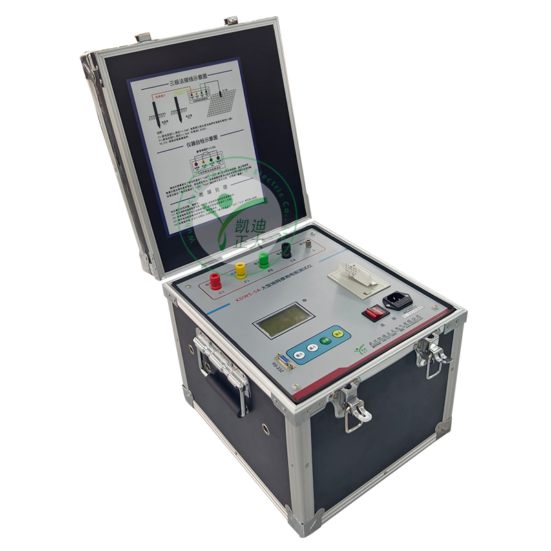 KDWS-5A型大型地網接地電阻測試儀,可測變電站地網(4Ω)、水火電廠、微波站(10Ω)、避雷針(10Ω)多用機型,采用了新型變頻交流電源,并采用了微機處理控制和信號處理等措施,很好的解決了測試過程中的抗干擾問題,簡化了試驗操作過程,提高了測試結果的精度和準確性,大大降低了試驗人員的勞動強度和試驗成本。