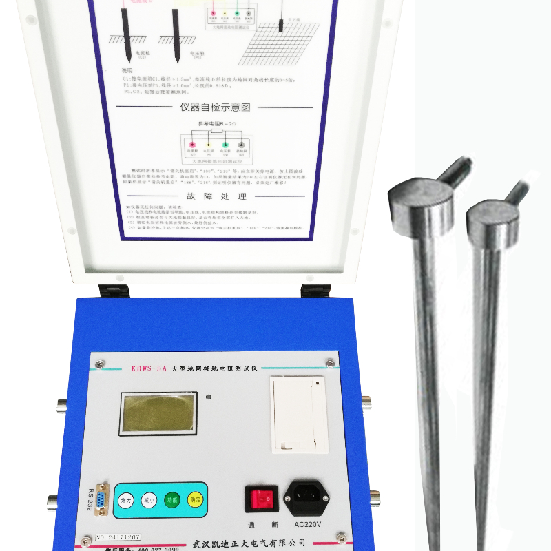 KDWS-10A型大型地網(wǎng)接地電阻測試儀,可測變電站地網(wǎng)(4Ω)、水火電廠、微波站(10Ω)、避雷針(10Ω)多用機型,采用了新型變頻交流電源,并采用了微機處理控制和信號處理等措施,很好的解決了測試過程中的抗干擾問題,簡化了試驗操作過程,提高了測試結(jié)果的精度和準確性,大大降低了試驗人員的勞動強度和試驗成本。