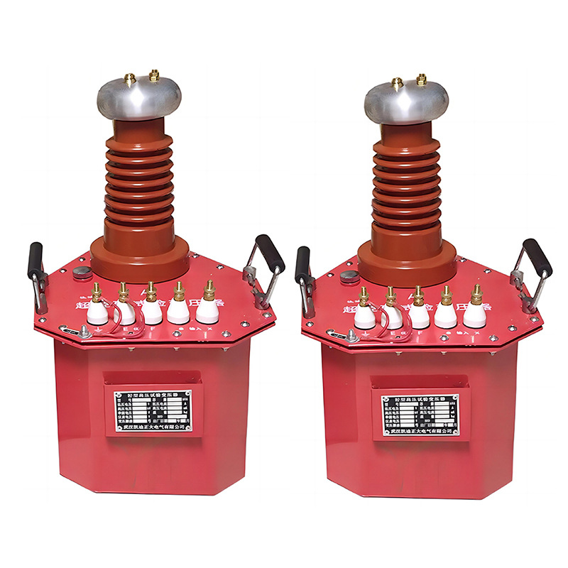超輕型試驗變壓器為戶內式設備,鐵芯采用優質冷軋取向硅鋼片,結構為芯式、橫式放置,芯柱上同心地裝有低壓繞組、測量繞組、屏蔽、高壓繞組。高壓繞組為多層寶塔式梯形結構、低壓繞組為圓筒式結構,屏蔽連同鐵芯一起接地。油箱底部設有移動腳輪(5kVA以下無腳輪),可在地面實時移動,便于實驗室和野外現場作業。
