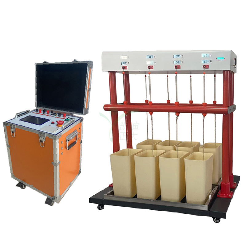 本產(chǎn)品各項(xiàng)指標(biāo)均符合國標(biāo)的要求。可以按以上的規(guī)程要求對(duì)絕緣鞋、絕緣手套等安全工器具進(jìn)行智能化絕緣耐壓試驗(yàn),每路試品均具有分?jǐn)鄼C(jī)構(gòu),當(dāng)其中一路擊穿時(shí)或超過設(shè)定泄漏電流值時(shí),該路試品將自動(dòng)脫離試驗(yàn),并將當(dāng)前泄漏電流保持顯示,不影響其它試品進(jìn)行試驗(yàn)。高低壓分離,泄漏電流采用抗干擾無線傳輸技術(shù)傳輸回控制箱,保護(hù)人身的安全。