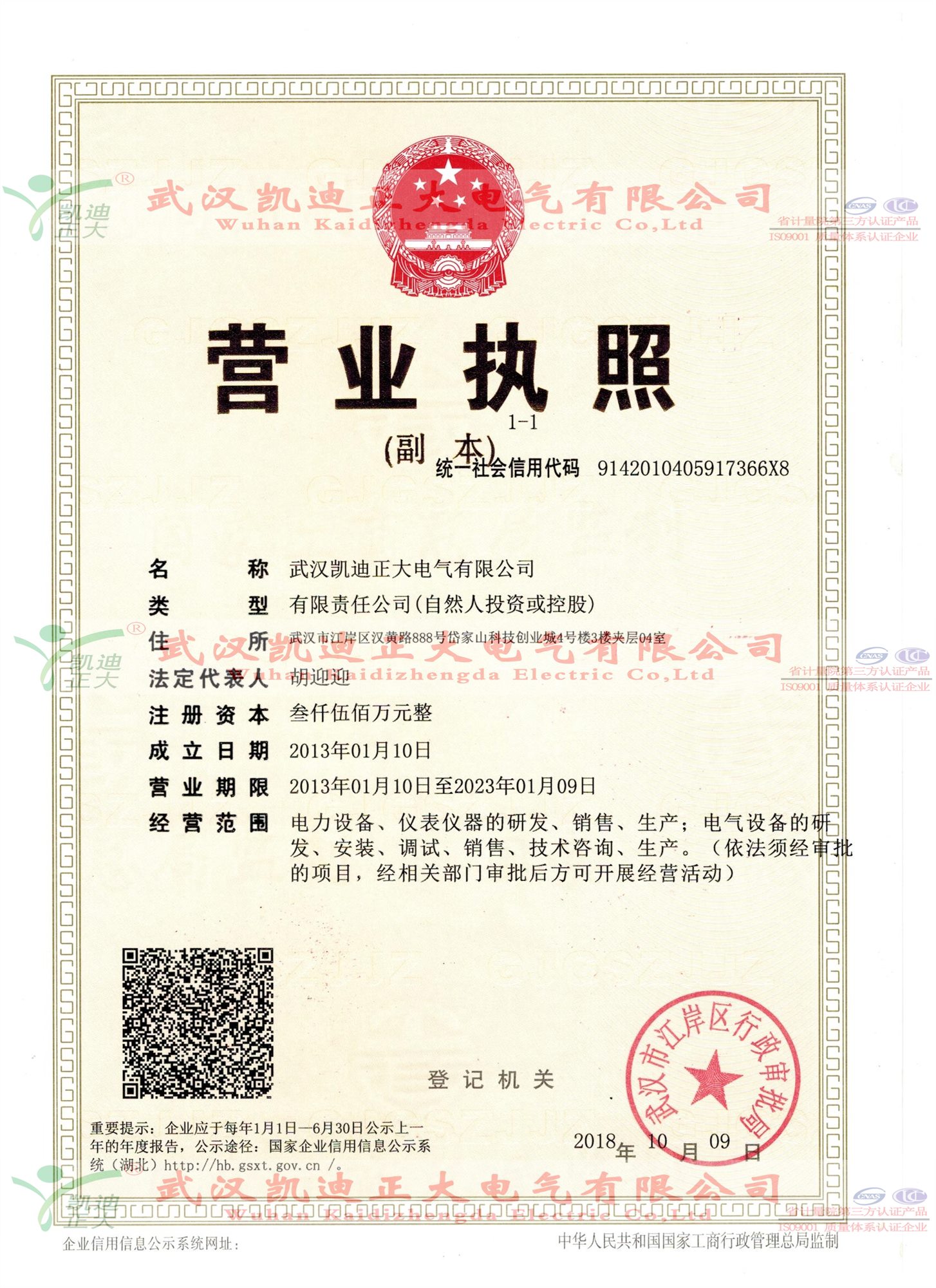 ![]() “凱迪正大”計量儀表商標注冊證 |