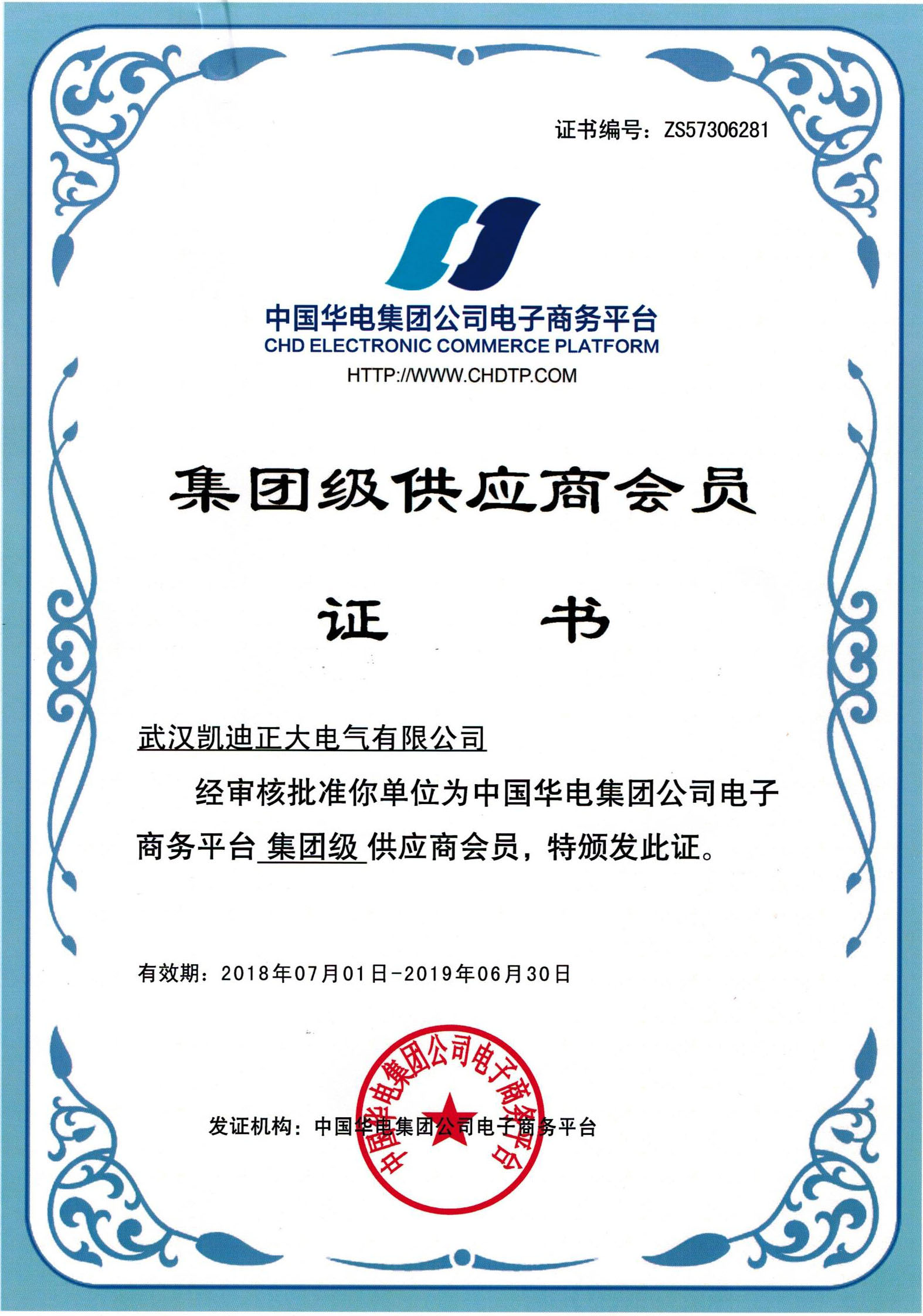 ![]() 中國華電集團“集團級供應商會員” |