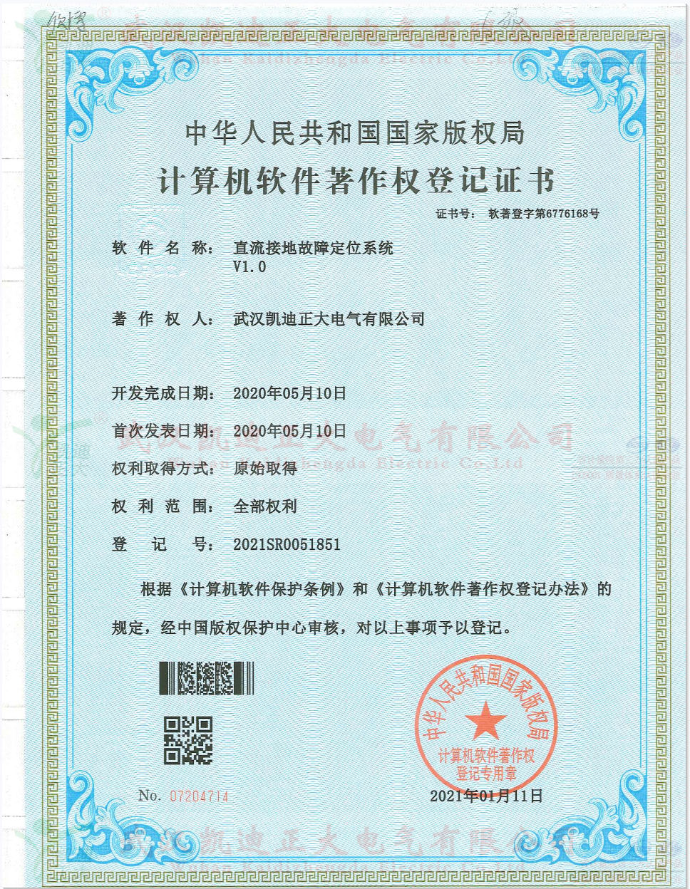凱迪正大單相接地巡查助手軟件獲得軟件著作權(quán)
