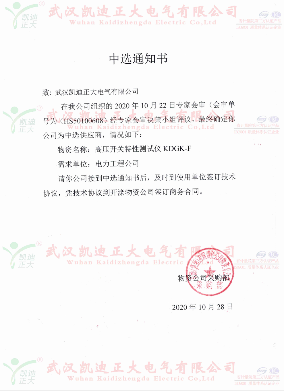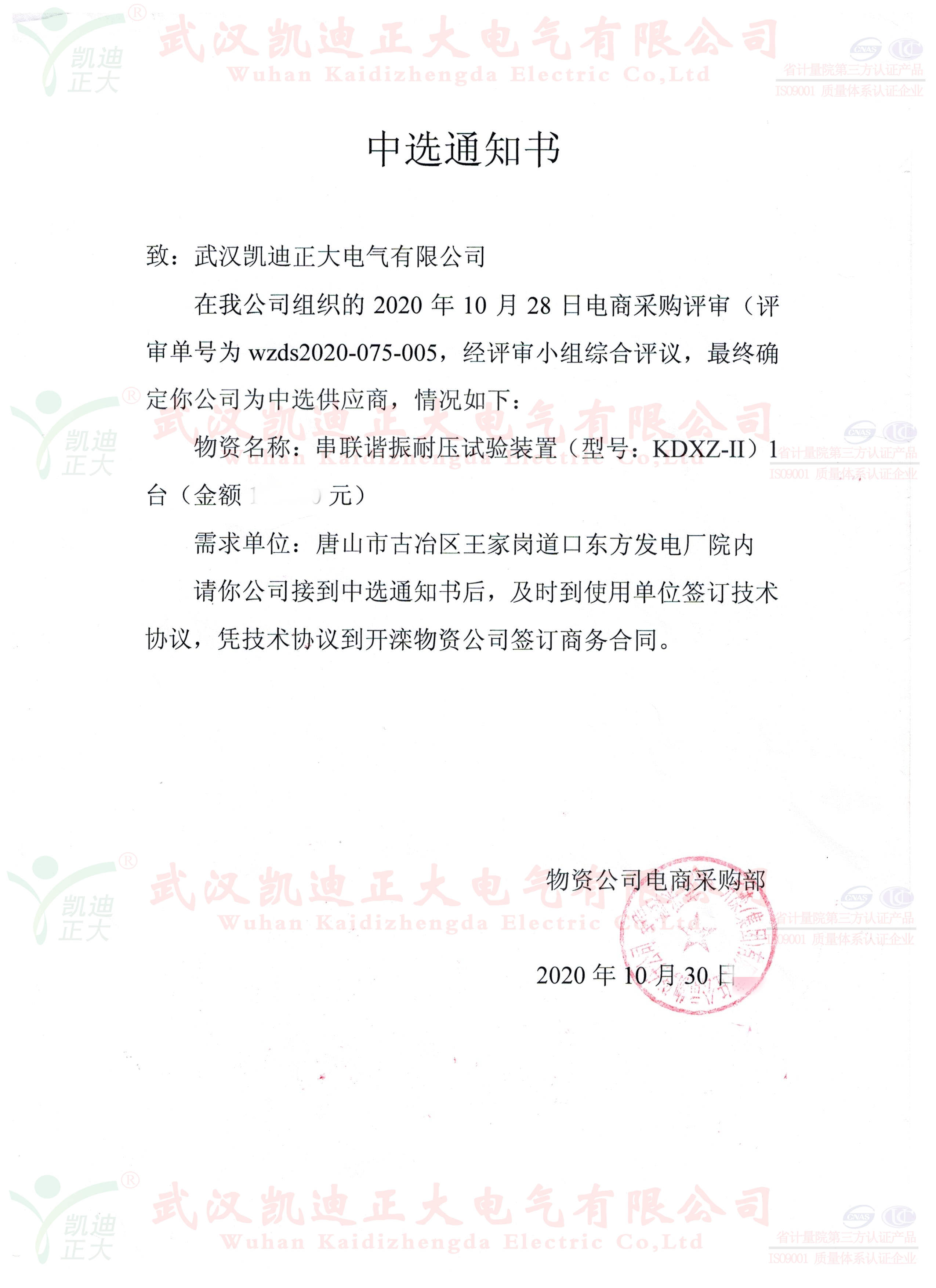 誰無暴風(fēng)勁雨時,守得云開見月明。這個11月可以說是灰蒙蒙的,經(jīng)歷了洗刷.......。我司與國內(nèi)大型鋼鐵企業(yè)的合作,各大煤業(yè)集團均獲得訂單。這次是開灤集團的東方電廠公開詢價采購KDXZ-II串聯(lián)諧振耐壓試驗裝置、KDGK-F高壓開關(guān)機械特性測試儀等設(shè)備。在與多家電氣設(shè)備制造商的競標中,我司以優(yōu)質(zhì)口碑、多項專利技術(shù)、精準售后等高分獲得評標組的認可。獲得中選供應(yīng)商。
