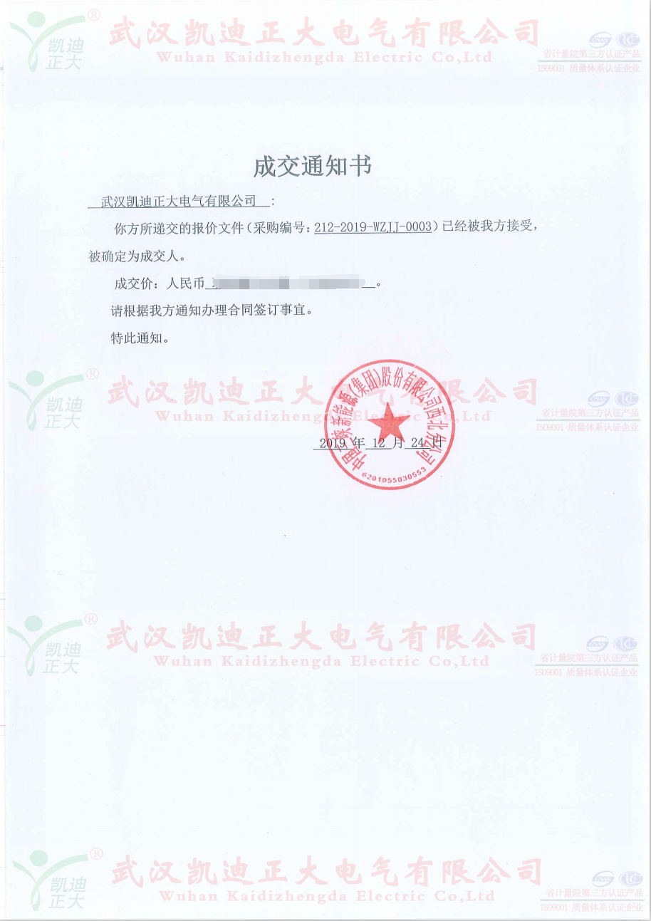 2020年上班的第一天收到中國三峽新能源(集團)股份有限公司西北分公司,采購編號:212-2019-WZJJ-0003的中標通知書。友好的合作為我司2020年開啟了新的啟程,“玖”字開頭更是中華習俗千年的好兆頭,長長久久、紅紅火火。祝愿兩家公司的精誠合作,為中國電力事業在新的一年打下堅實的基礎,在未來的一年里再創輝煌。