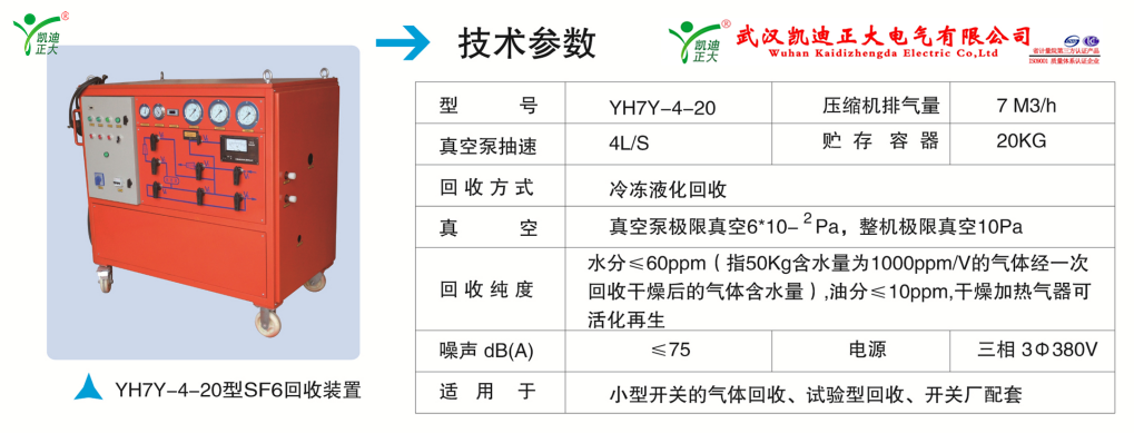 35kV及以下開(kāi)關(guān)成套設(shè)備廠建議用KDQH-7Y-4-20型,壓縮機(jī)排量在7M3/h,抽氣速率4L/S采用冷凍液化回收。