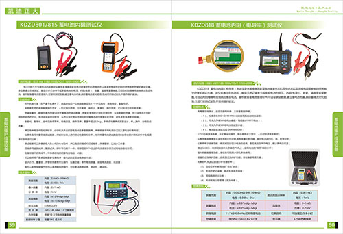 KDZD801/815蓄電池內(nèi)阻測(cè)試儀抗干擾能力強(qiáng),在嚴(yán)重干擾條件下,液晶屏最后一位數(shù)據(jù)能穩(wěn)定在±1個(gè)字范圍內(nèi),讀數(shù)穩(wěn)定,重復(fù)性好,采用最高新的液晶觸摸操作方式,人性化操作界面,外形美觀,體積小,重量輕,操作簡(jiǎn)單,讀數(shù)穩(wěn)定,重復(fù)性好。采用最高新液晶觸摸屏操作方式,人性化操作界面,外形美觀,體積小,重量輕,操作簡(jiǎn)單,可以快速完成現(xiàn)場(chǎng)測(cè)量;存儲(chǔ)容量大,能夠在表內(nèi)存儲(chǔ)5200節(jié)蓄電池的測(cè)試數(shù)據(jù),并配備專用的計(jì)算機(jī)管理軟件,實(shí)現(xiàn)數(shù)據(jù)的存儲(chǔ),同一塊電池不同時(shí)期技術(shù)狀態(tài)的對(duì)比,電池劣化趨勢(shì)分析等,從而實(shí)現(xiàn)可預(yù)見性地及時(shí)對(duì)蓄電池進(jìn)行修復(fù)或者更換,避免發(fā)生電源斷電故障,智能化,數(shù)字化,全中文操作菜單,準(zhǔn)確測(cè)量,操作簡(jiǎn)單;重量不超過0.5kg,手持式與腰胯式雙重設(shè)計(jì),單人操作,全程自動(dòng)測(cè)量,滿足各種電池內(nèi)阻檢測(cè)標(biāo)準(zhǔn),須收錄齊全的蓄電池內(nèi)阻參數(shù)數(shù)據(jù)庫,并能在儀表上進(jìn)行結(jié)論性查詢和分析,也可將蓄電池測(cè)試數(shù)據(jù)用U盤導(dǎo)出到計(jì)算機(jī)軟件中生成圖表和曲線進(jìn)行分析;測(cè)試報(bào)表可以方便的導(dǎo)入EXCEL和Word文件,并以指定的格式打印成報(bào)告,方便管理,以減少工作量,四端多用途測(cè)試夾,集測(cè)試夾,探針等功能于一體,能夠適應(yīng)98%以上的電池連接安裝方式和電池連接安裝方式和電池極柱形式,在強(qiáng)紋波干擾情況下,可準(zhǔn)確在線測(cè)試蓄電池電壓,內(nèi)阻。可按照用戶需求定制更新儀表程序,最高新的交流放電測(cè)試方法;設(shè)計(jì)小巧,重量輕,方便使用者攜帶及操作,儀器功能,單節(jié)電池測(cè)量,成組電池測(cè)量,示波器,采用按鍵作操作也可以采用觸摸屏操作,可任意選擇測(cè)試夾,測(cè)試針,測(cè)試鉗。