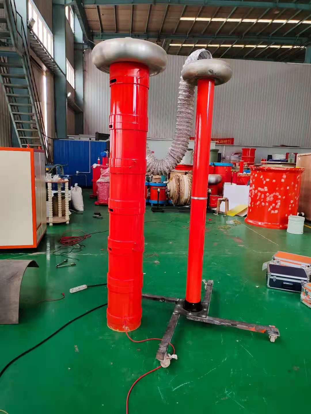 這次采購的KDXZ-II串聯諧振耐壓試驗裝置(270kvA270KV)用于110kV主變、開關GIS、發電機、互感器、電纜及絕緣子等電氣設備交流耐壓試驗。采用黃金比例分體式多節電抗器升壓方式。便攜式串聯和并聯操作升壓。額定輸出電壓:0~270kV及其以下;輸出頻率:30~300HZ;連續工作時間:60min諧振電壓波形畸變:≤1.0%