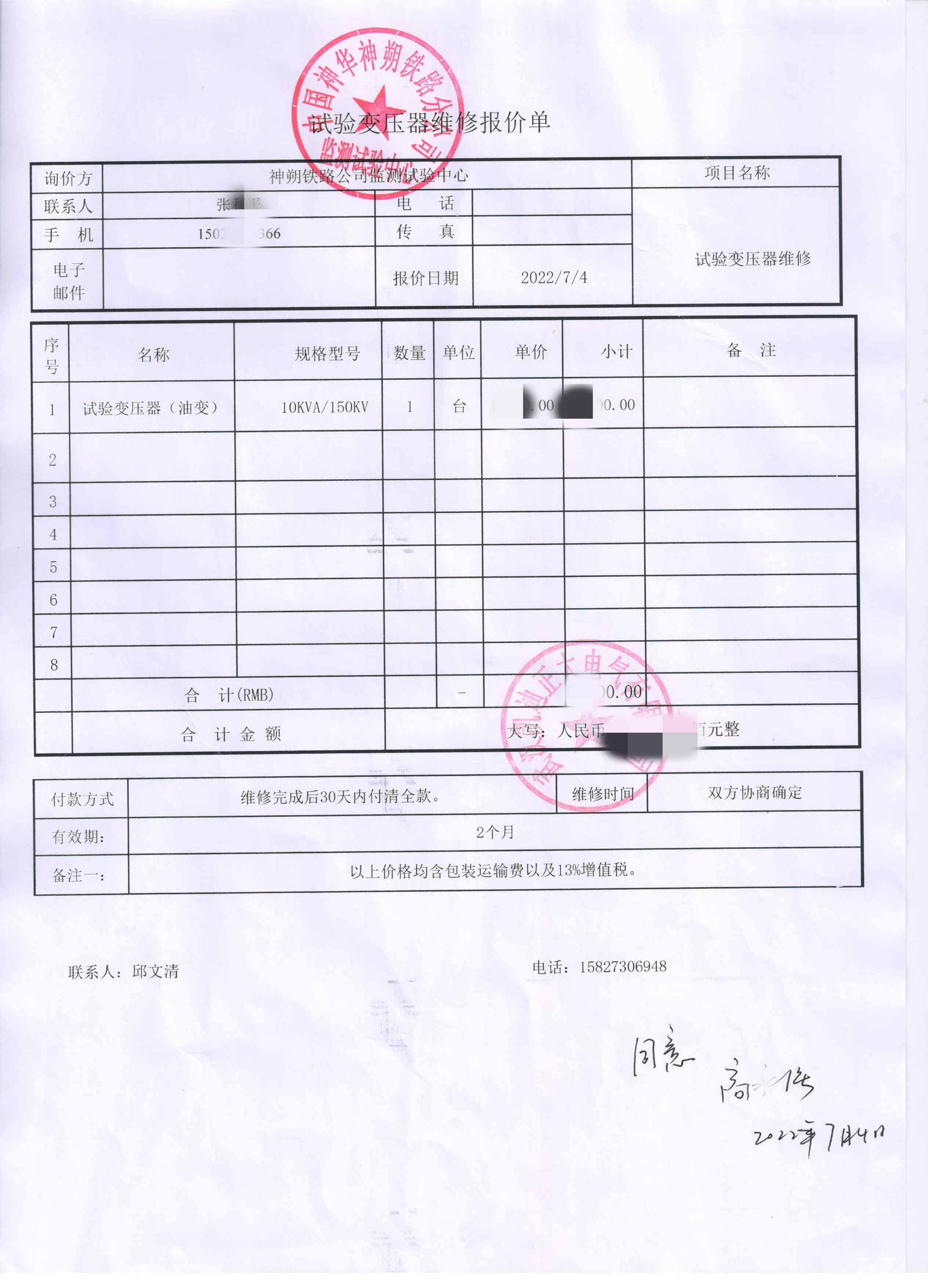 我司為中國神華神朔鐵路分公司提供售后維修服務