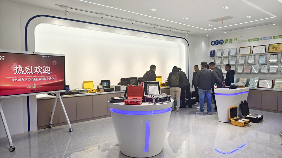 上午9時(shí),蒙古國(guó)烏蘭巴托電網(wǎng)公司高層領(lǐng)導(dǎo)一行準(zhǔn)時(shí)抵達(dá)我司。在我司領(lǐng)導(dǎo)的陪同下,來(lái)賓們首先參觀了公司的高壓車間、研發(fā)車間及展廳。在生產(chǎn)車間,來(lái)賓們?cè)敿?xì)了解了我司的生產(chǎn)工藝、產(chǎn)品特性;在研發(fā)中心,我司技術(shù)人員向嘉賓們展示了最新的耐壓試驗(yàn)設(shè)備以及接線方式、使用方法和注意事項(xiàng);在展廳,來(lái)賓們對(duì)我司的產(chǎn)品系列和品牌形象有了更直觀的認(rèn)識(shí)。