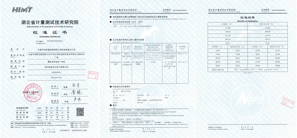 2025年7月16日,湖北省計量測試技術(shù)研究院正式簽發(fā)了編號為2025DW008600361的校準(zhǔn)證書,完成了對武漢凱迪正大電氣有限公司研制生產(chǎn)的KDZD886C蓄電池充放電一體機(jī)的計量校準(zhǔn)工作。