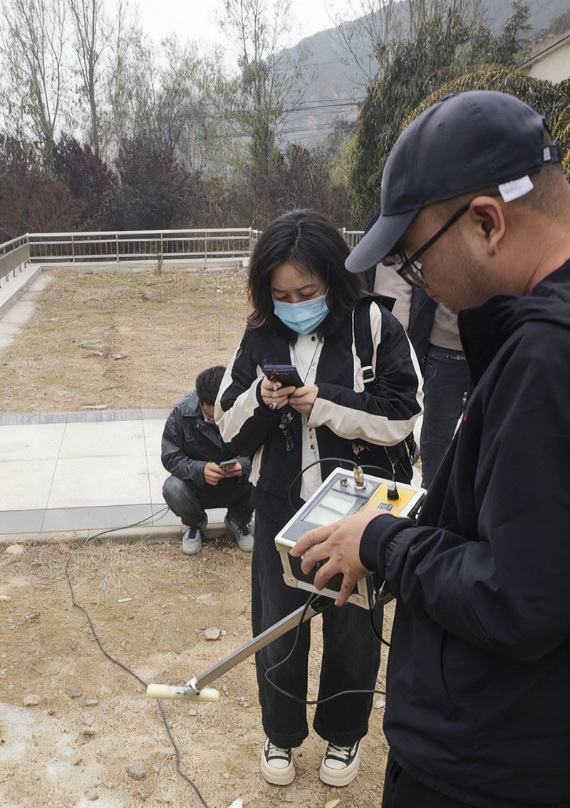 在室外場地,技術人員演示了如何使用磁感應探測棒進行電纜路徑探測,并通過峰值法/空值法判斷電纜走向與埋深。隨后,現場演示了差分電位法定位接地故障的操作流程,包括A字架的使用、方向指示燈判斷、信號強度分析等關鍵步驟。